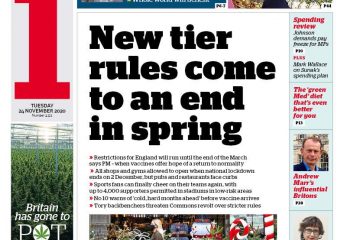 It will be a harsh winter this year as lockdown is replaced with tighter tiers – but a potential vaccine could bring hope to the country by spring, the Daily Mirror reports.