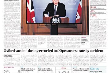 On the front of The Daily Telegraph is a report on Mr Johnson’s news conference, where he revealed England’s tiered exit from its second lockdown.