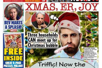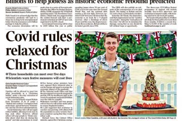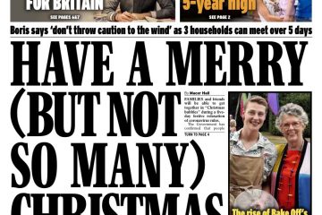 The country’s festive strategy is also the subject of The Daily Telegraph’s front page, which also features an image of Chancellor Rishi Sunak.