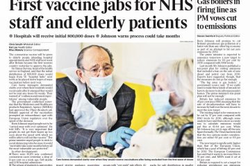 The Daily Telegraph quotes Boris Johnson – who said the Pfizer jab offers a chance to “reclaim our lives” – on its front page covering the vaccine approval.