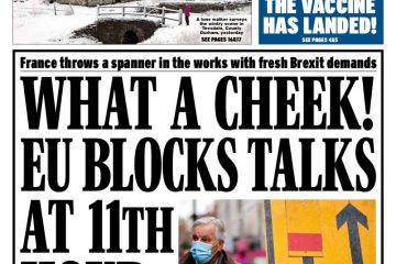 Tomorrow’s Daily Express leads with a story about Brexit talks hitting a block at the eleventh hour over subsidies.