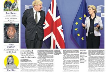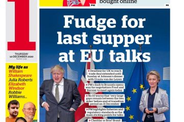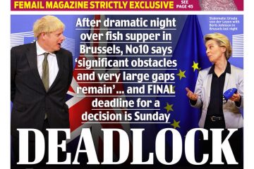 Deadlock At Dinner – that’s the headline on the front of the Daily Mail, regarding post-Brexit trade talks.