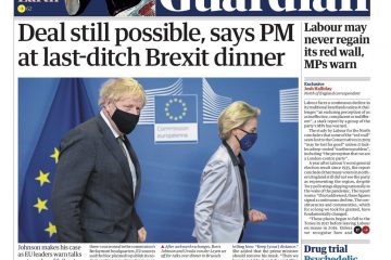 The Guardian describes the prime minister’s meeting in Brussels as a “last-ditch Brexit Dinner”.