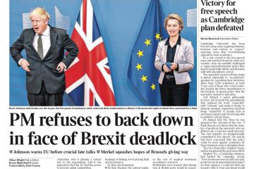 The prime minister is refusing to give up in face of Brexit deadlock – that’s on the front of The Times.