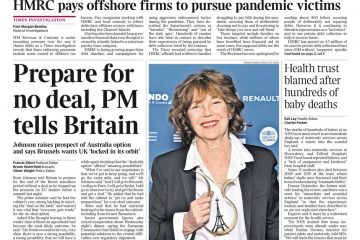 The Financial Times leads on the prime minister’s statement on Thursday that a no-deal Brexit is now “a strong possibility”. The paper calls that prospect “bleak”.