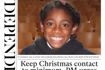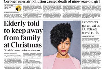 The front page of The Guardian carries a picture of nine-year-old Ella Kissi-Debrah, who became the first person in history to have officially died as a result of air pollution. Her mother is calling for a new clean air act in her name after the coroner’s landmark ruling on Wednesday.You can read more about Ella’s story here.