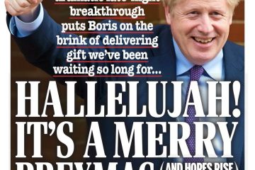 The Daily Mail has claimed “it’s a merry Brexmas” after Boris Johnson was in “touching distance” of securing a Brexit trade deal on Wednesday.