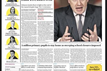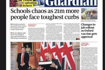 The Guardian writes that more than three-quarters of England’s population will enter 2021 being urged to stay at home, with the reopening of schools delayed in the hardest-hit areas.