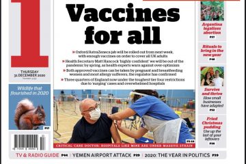 The i leads with the Oxford/AstraZeneca jab being rolled out from next week, with enough vaccines on order to cover all UK deaths.
