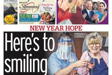 The Daily Mirror leads with a smiling 86-year-old care home resident who is pictured clinking glasses in hopes of a better year ahead.