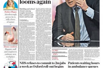 Boris Johnson is promising that the vaccination effort will be stepped up, despite only six NHS trusts being set to distribute the Oxford-AstraZeneca vaccine on the day of its launch – that’s on the front of the Daily Express.