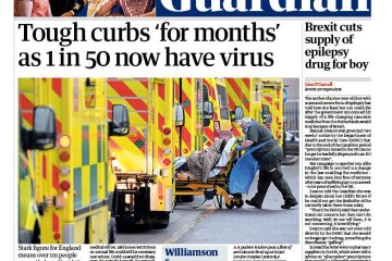 The Guardian says Britain could face harsh restrictions for many months to come after figures suggested more than one million people in England are infected with coronavirus.
