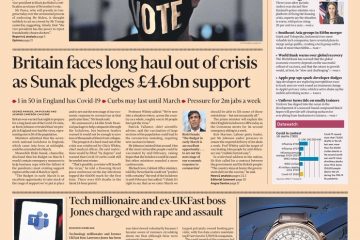 The Financial Times leads with the same story, saying Britain has been warned to prepare for a long haul out of the COVID-19 crisis, as the prime minster revealed one million people in England now had the virus.