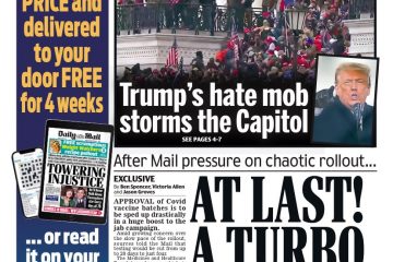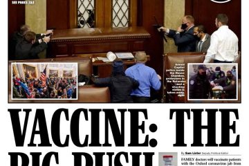 The Daily Express shows a large image of the amazing scenes from Washington, while its lead story marks the start of Britain’s vaccine push.