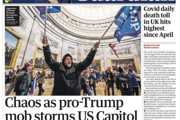 The Times leads on the thousands of President Trump supporters who stormed the US Capitol to bring a violent halt to the formal confirmation of his election defeat.