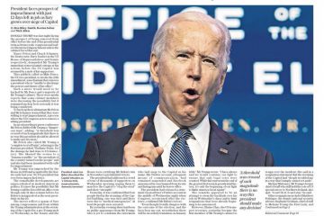 Similarly, The Daily Telegraph is covering the Democrat’s push to remove President Donald Trump from office 12 days early.