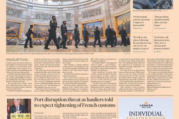 The Financial Times is leading on Joe Biden’s comments on the Capitol riot. He said the president had incited “domestic terrorists”.