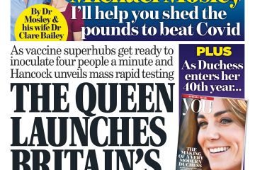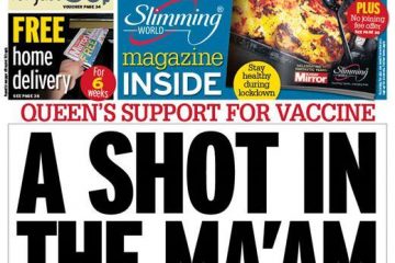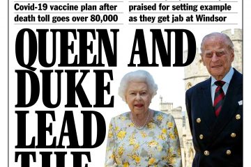 The Mail On Sunday praises the newly COVID-vaccinated Queen and Prince Philip, saying they have started a “jab blitz” in Britain and looks ahead to a time when four people will receive the vaccine every minute.