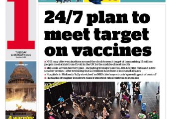 The i leads on reports that coronavirus vaccines may be available around the clock in order to protect as many people as possible amid spiralling hospital admissions.