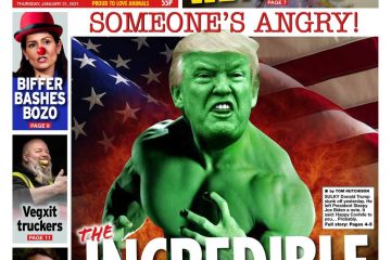 The Daily Star calls Donald Trump ‘The Incredible Sulk’ as he slunk off from the White House, leaving his successor Joe Biden a note.