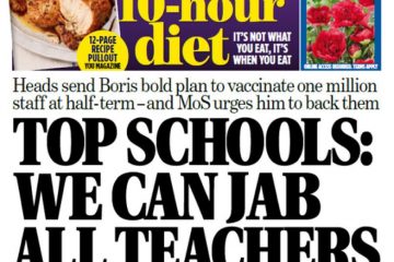 More than 150 independent schools have unveiled a plan to become mass vaccination centres at which the UK’s entire teaching force will be given COVID-19 injections. The Mail on Sunday says the scheme aims to inoculate Britain’s schoolworkers, 16 hours a day, in order to get children back into classrooms.