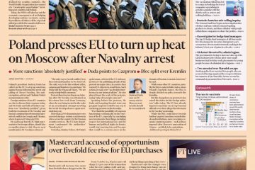 The Financial Times reports that Poland is leading the charge within the European Union to push new sanctions on Russia following the arrest of Alexei Navalny and the protests over the weekend.