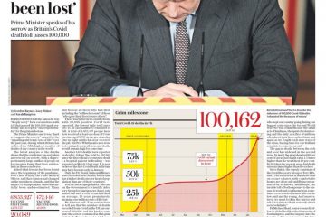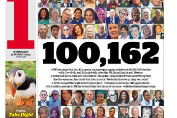 The Guardian says “experts reacted with dismay and sorrow” as the number of people in the UK who have died with COVID-19 passed 100,000.
