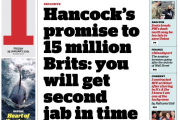 The i reports that the health secretary has promised the 15 million Britons first in line for the coronavirus vaccine that they will get their second shot on schedule – within 12 weeks of the first.