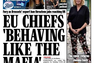 The EU is threatening to halt exports of coronavirus vaccines to the UK citing “questionable behaviour” by British-based jabs manufacturers, the Daily Mirror reports.
