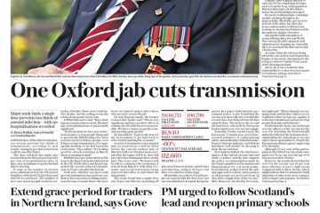 The Daily Telegraph leads with a story about data which shows the Oxford/ AstraZeneca jab prevents two thirds of transmissions.