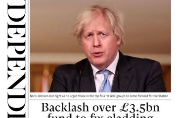 The prime minister has been accused of betraying leaseholders after a new fund to fix unsafe cladding was revealed to have left many still facing financial ruin – that’s on the front of The Guardian.