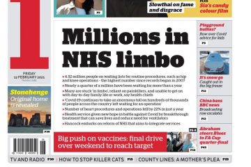 The i reports on the upheaval in the NHS caused by the pandemic, saying millions of patients are waiting for routine procedures.