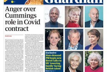 The Guardian leads with a story about the prime minister’s former senior aide, Dominic Cummings, who has told a judge he did not ask for a company to be given a government contract because bosses there were his “friends”. Read more here.