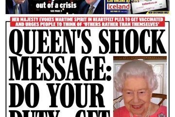The Queen evoked a “wartime spirit” in what the Daily Express calls a “shock message” encouraging people to get the COVID vaccine.