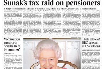 The Queen’s comments on people who are unsure about whether to have the vaccine also lead The Daily Telegraph. The 94-year-old had the jab at Windsor Castle in January, the paper adds.