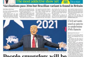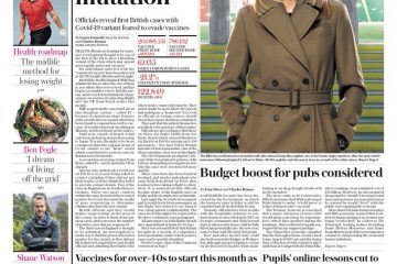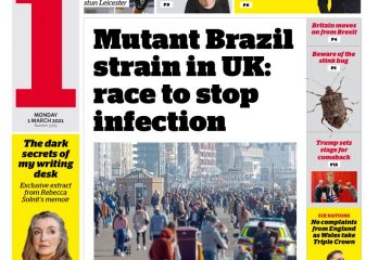 The Daily Telegraph leads with the search for a mystery COVID-19 patient thought to be one of the first in the UK to have a Brazilian variant of the virus which may spread more rapidly and evade vaccines.