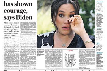 A picture of Meghan wiping away a tear is on The Daily Telegraph’s front page as it carries Joe Biden’s comments about the duchess’s “courage”.