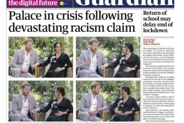 The Guardian leads with Harry and Meghan’s Oprah interview, saying the palace is in “crisis” after they revealed a member of the royal family questioned how dark Archie’s skin would be before he was born.