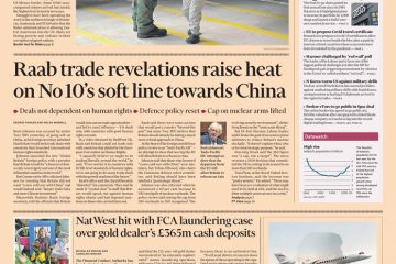 The Financial Times says Prime Minister Boris Johnson has been accused by senior Tory MPs of going soft on China after Foreign Secretary Dominic Raab said Britain would seek trade deals with countries that breached international human rights standards.