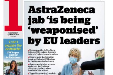 The i claims the AstraZeneca vaccine is being “weaponised” by EU leaders over claims the jab causes blood clots.