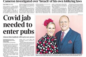 Boris Johnson has indicated that pub landlords could ask for vaccine certificates in exchange for entry, tomorrow’s Daily Telegraph says.