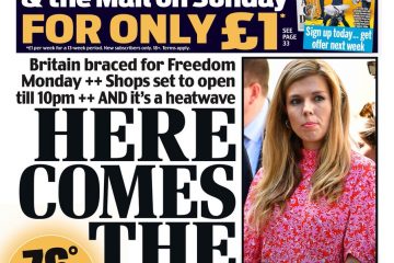 “Here comes the sun” – the Daily Mail declares – with a spring heatwave to usher in the first significant return of personal freedoms in three months. Temperatures are set to hit 76F in “Freedom Week”… that’s 24C.