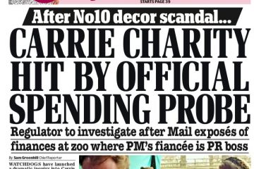 The Daily Mail says an inquiry has been launched into the zoo charity owned by Carrie Symonds, Boris Johnson’s fiancee, following allegations about its spending.