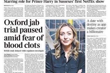 The Times says a small trial of the Oxford-AstraZeneca vaccine in children has been paused while the UK medicines regulator looks at reports it may be linked to a tiny number of clots in adults.A University of Oxford spokesperson said there were “no safety concerns” with this specific study, but that further information was being awaited from the Medicines and Healthcare products Regulatory Agency (MHRA).