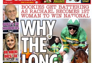 Jockey Rachael Blackmore’s historic victory at the Grand National dominates Daily Star Sunday’s front page. Blackmore, the first woman ever to win the famous race, apparently “bashed the bookies for millions” riding 11-1 shot Minella Times first across the line.