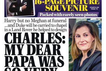 Sunday Express carries Prince Charles’s admission that he and his family miss his father “enormously” along with Sophie, the Countess of Wessex’s revelation that “the Queen has been amazing”.