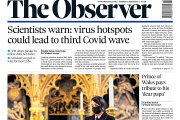The Observer features Prince Charles’s moving tribute to his “dear Papa”. It also warns a third coronavirus wave could be on the way, due to a number of virus hotspots still remaining in some areas of the UK.