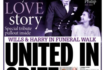 News that royal brothers William and Harry will both walk in Prince Philip’s funeral procession, has prompted the Sunday Mirror headline, “united in grief”.