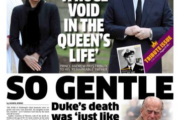 The Daily Express, like a number of the papers, leads on the Queen’s words that Prince Philip’s death has left a “huge void” in her life.Prince Andrew relayed her comments as some members of the family attended a Windsor church service.He said the Queen was “feeling it, I think, probably more than everybody else”, and called her “incredibly stoic”.