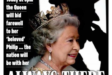The Daily Express front page features a singular image of the Queen with a silhouette of Prince Philip behind her ahead of his funeral on Saturday.Its headline reads: “Always there for you ma’am.”